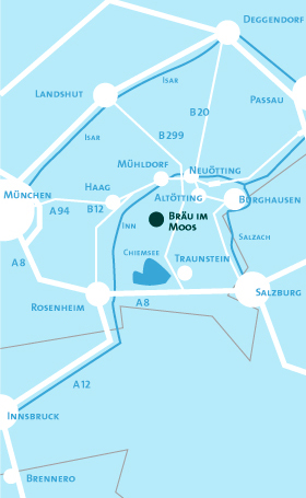 Von München aus 75 km östlich, 30 km nördlich des Chiemsees und nur 25 km von Burghausen und der österreichischen Grenze zu Ach entfernt.